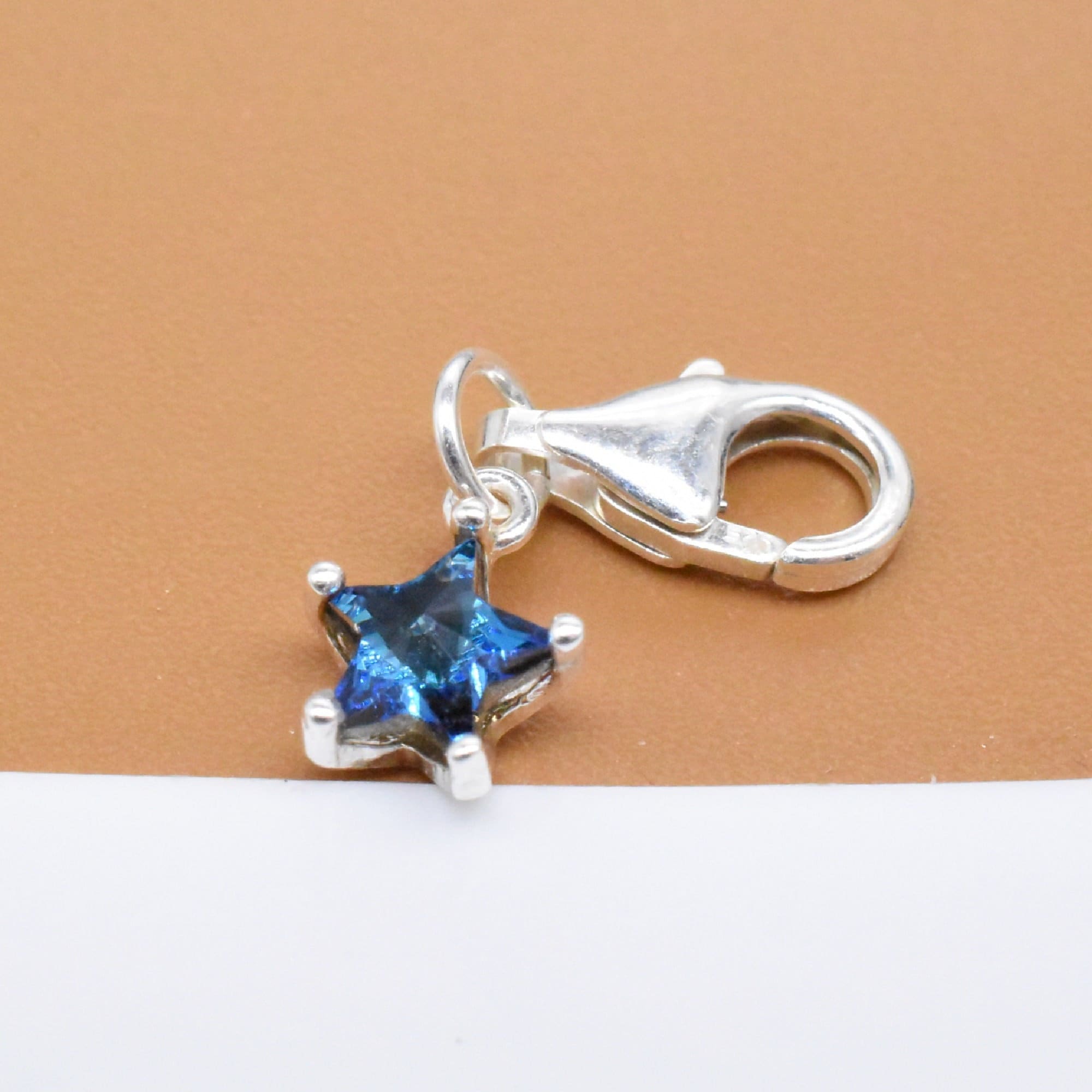 Sterling Silver Small Star Clip On Charm with Blue CZ, 925 Silver S...