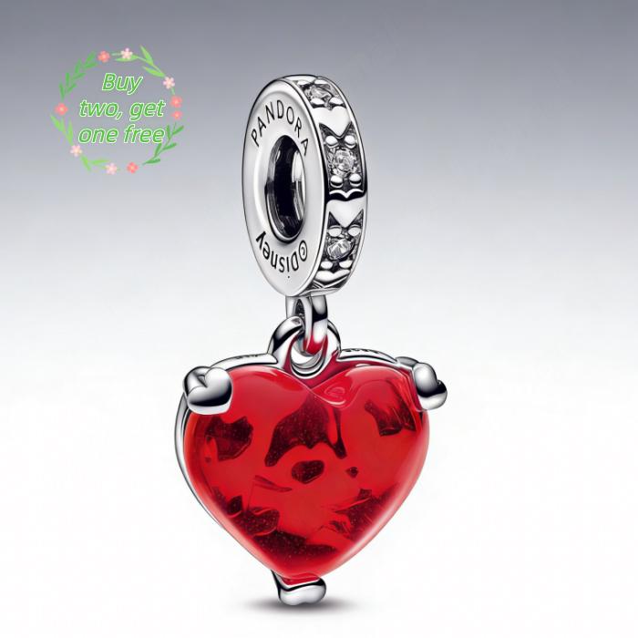 Pandora Style Disney Mickey & Minnie Mouse Kiss Red Murano Glas...