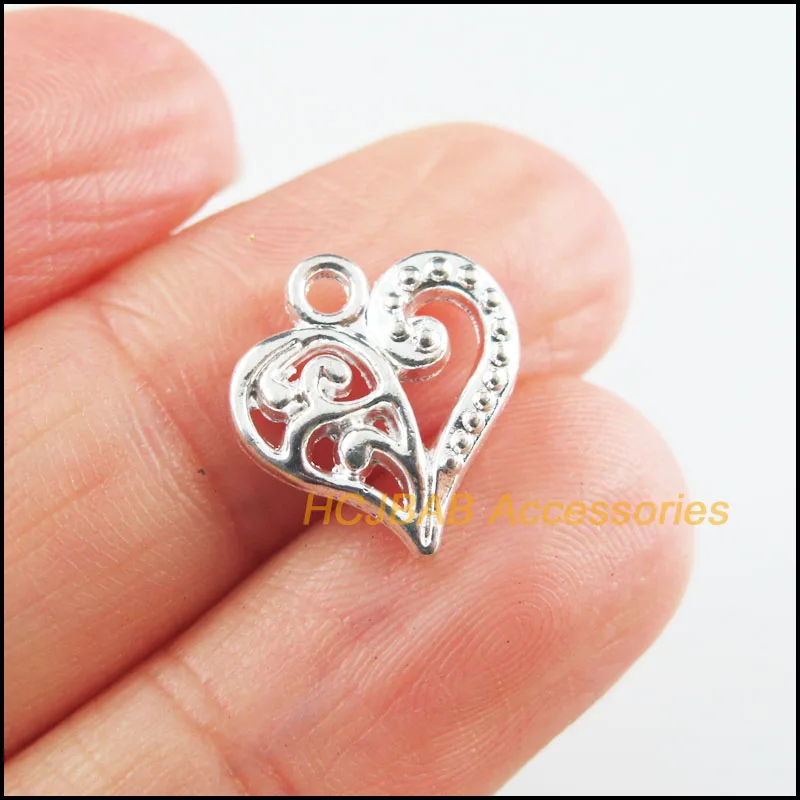 35 New Heart Charms Silver Plated Flower Pendants 13x14mm