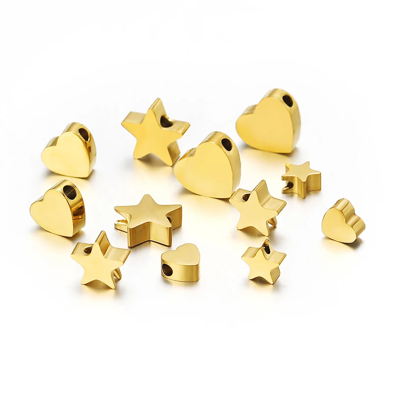5pcs Stainless Steel Polished Heart Beads Gold Color Star Spacers B...