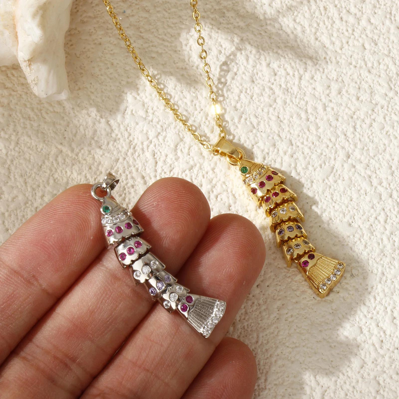 1 Piece Brass Ocean Jewelry Pendants Multicolor Fish Animal Movable Cubic Zirconia Charms For DIY Ne...