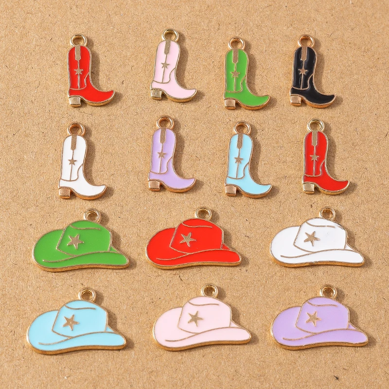 10pcs Enamel Boot Hat Pendant Charms for Jewelry Making Necklace Ea...