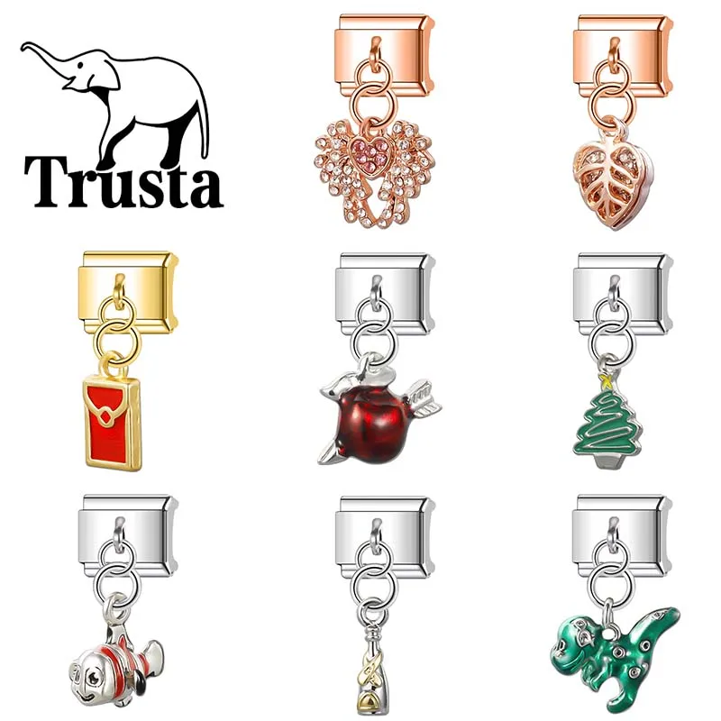 Trusta 2024 Dinosaur Fish Charm Italian Links 9mm Bracelet Stainles...