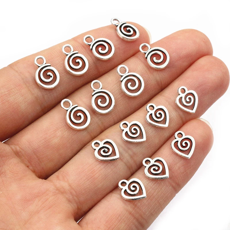 30pcs 11x8mm 10x8mm Antique Silver Plated Heart Swirl Charms Pendant DIY Making Accessories for Brac...