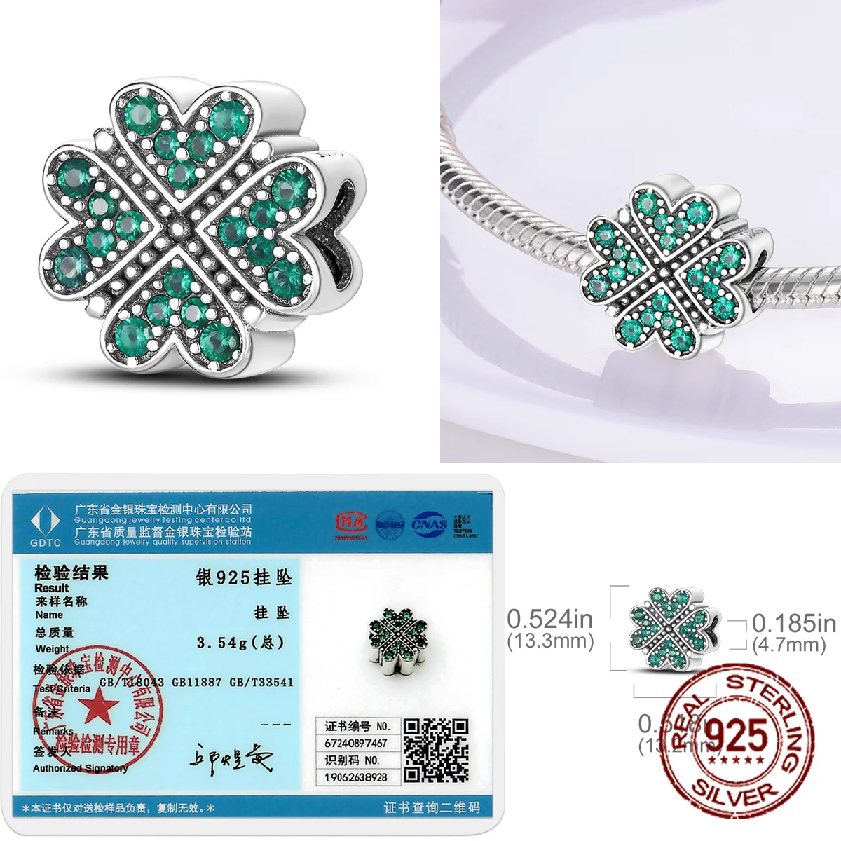Green Tree of Life Charms 925 Sterling Silver Family openable Clover Pendant Fit Original Bracelet D...