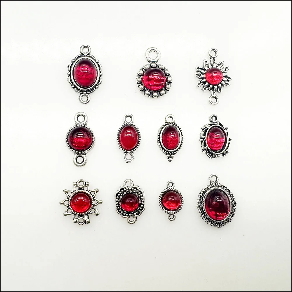 New Flower Pendants Gold Plated Connectors Red Glass Glaze For Bracelets Charms Making Jewelry