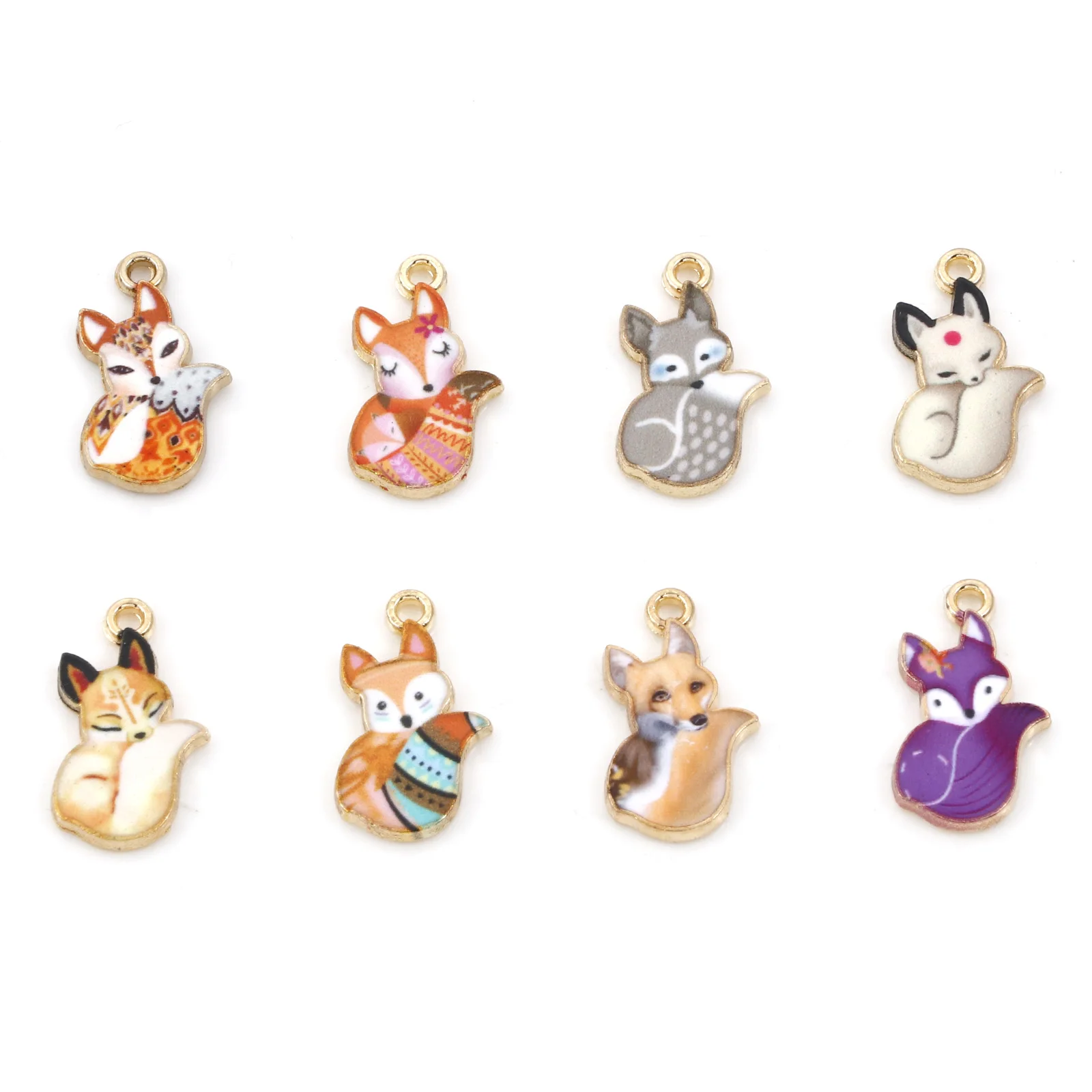 Cartoon Fox Animal Charms Gold Color Metal Pendants Multicolor Enamel DIY Necklace Bracelets Women J...
