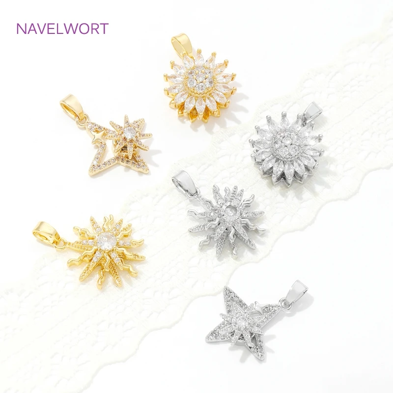 Trendy Rotatable Pendants Fittings18K Gold Plated Brass Sun /Sunflower/Four-Angle Star Charms Pendan...