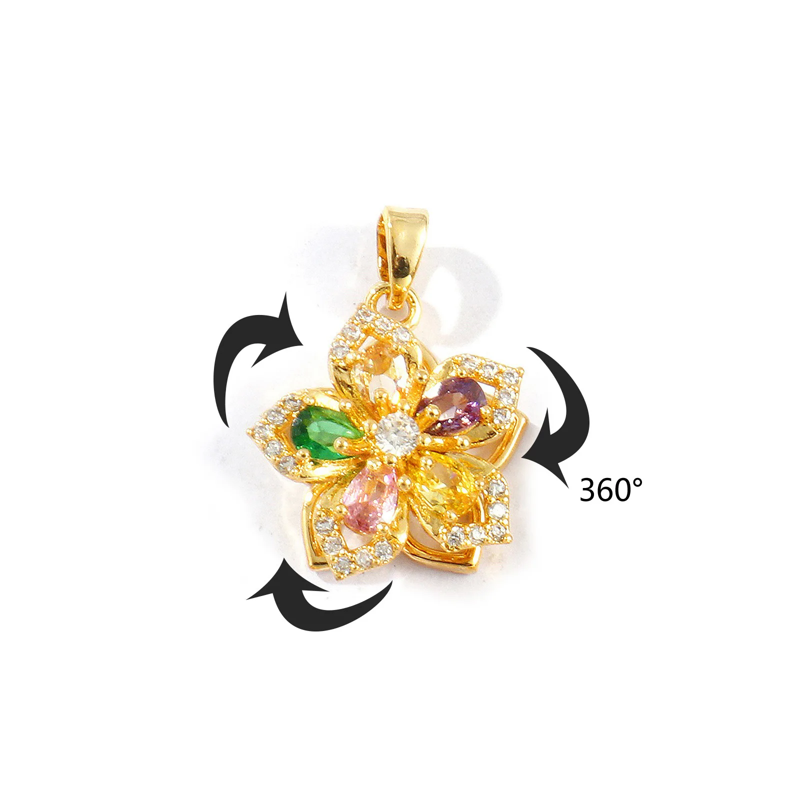 1 Piece Brass & Rhinestone Flora Collection Charm Pendant Multicolor Flower Rotatable Pendants F...