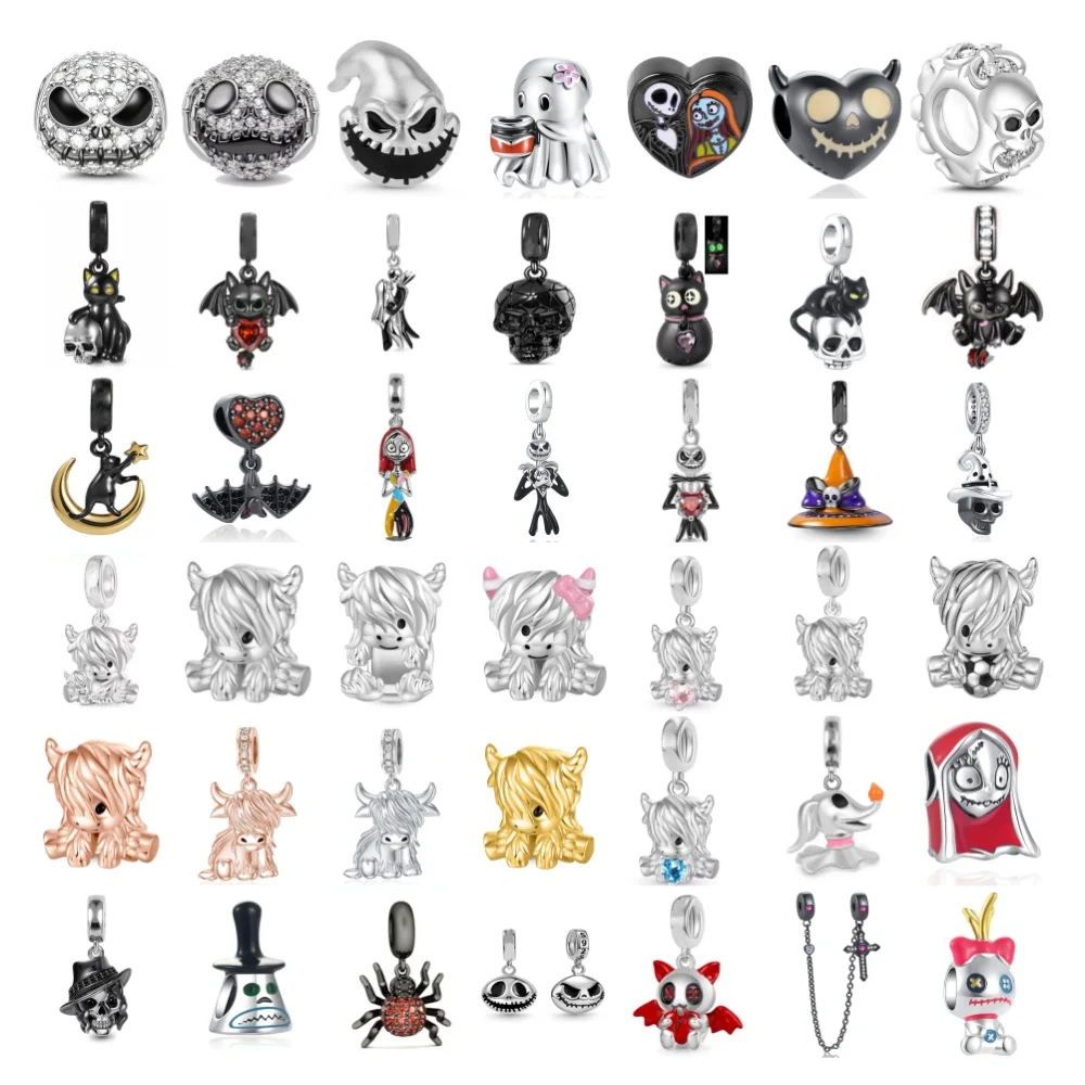 Highland Cow Style & Gothic Skull Bead Charms, 925 Silver DIY Bracelet Necklace Pendants,Ideal S...