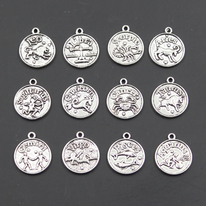 Charms Pisces Zodiac Vigro Aquarius Taurus Scorpio Capricron Gemini 20x17mm Antique Making Tibetan B...