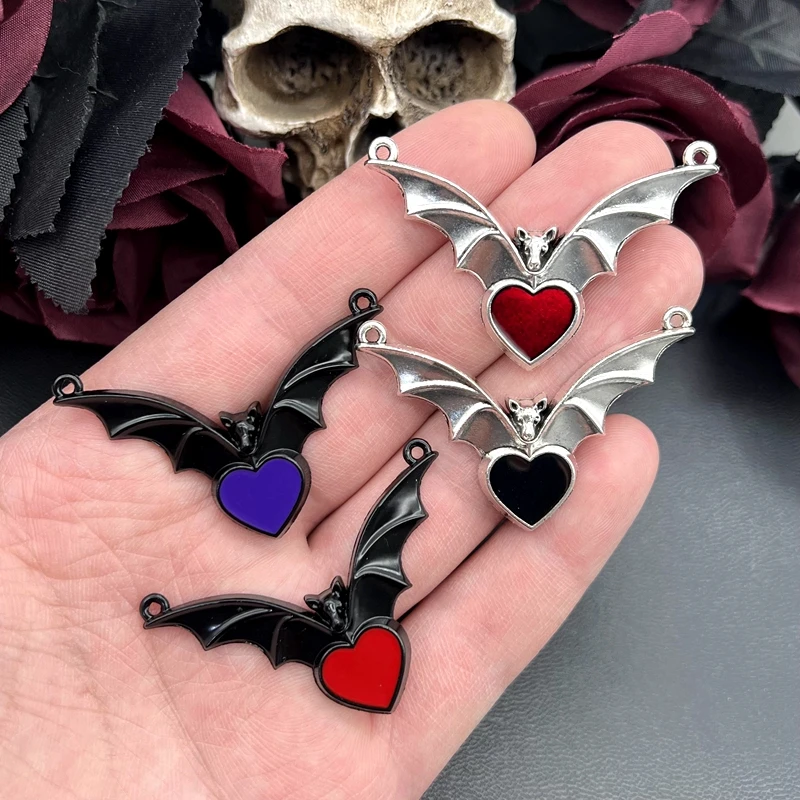 4pcs Bat Blood Red Heart Enamel Charms Vampire Bat Connector Pendan...