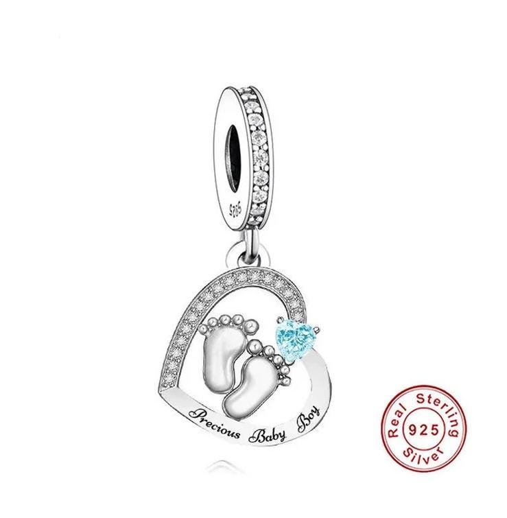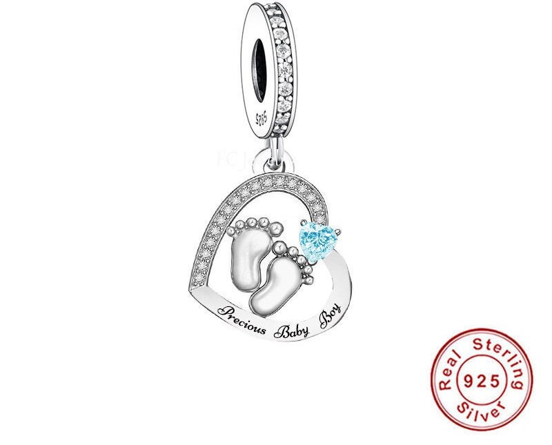 Baby Boy Feet Charm , Footprint Baby Shower Newborn Dangle Charm , ...
