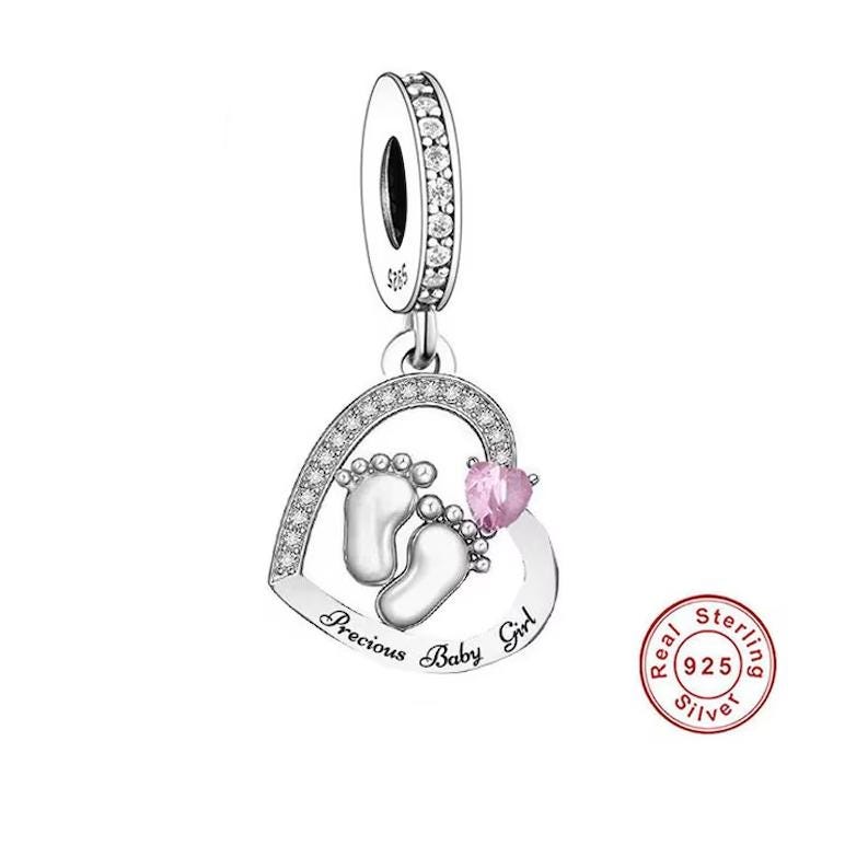 Baby Girl Feet Charm , Footprint Baby Shower Newborn Dangle Charm, ...