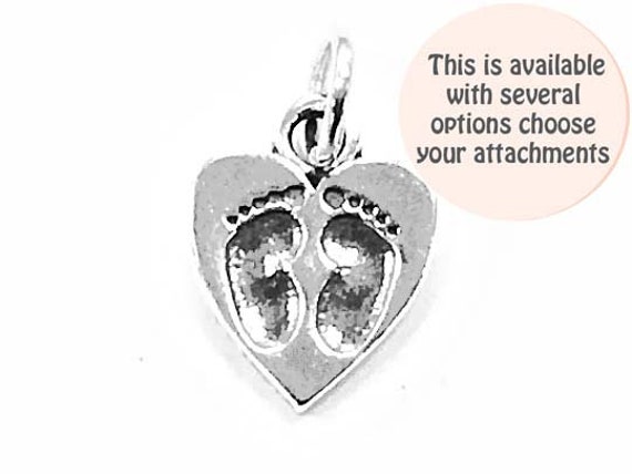 1 Pc Sterling Silver Baby Footprints feet Heart charm pendant 15mm x 12mm (Does not include jump rin...