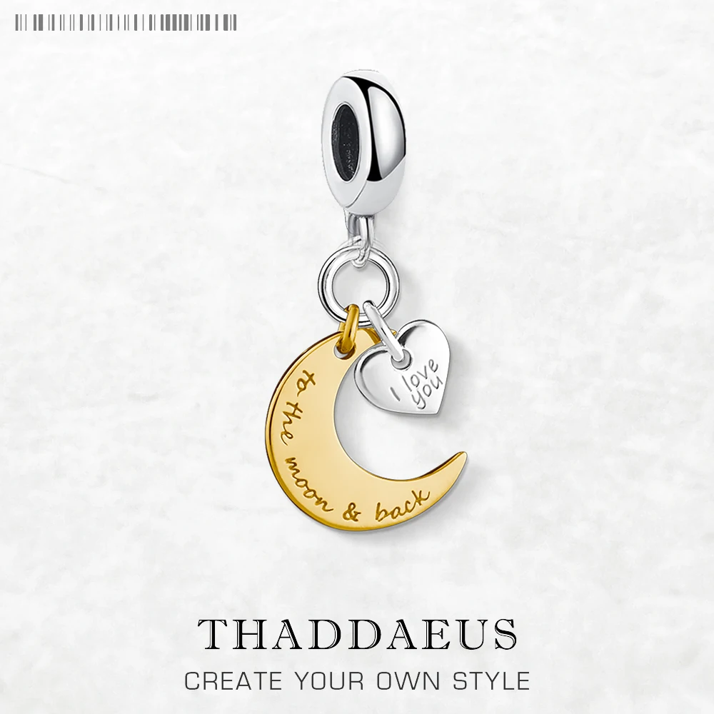 Moon & Love Heart Charm Pendants For Women Romantic DIY 925 Sterling Silver Jewelry