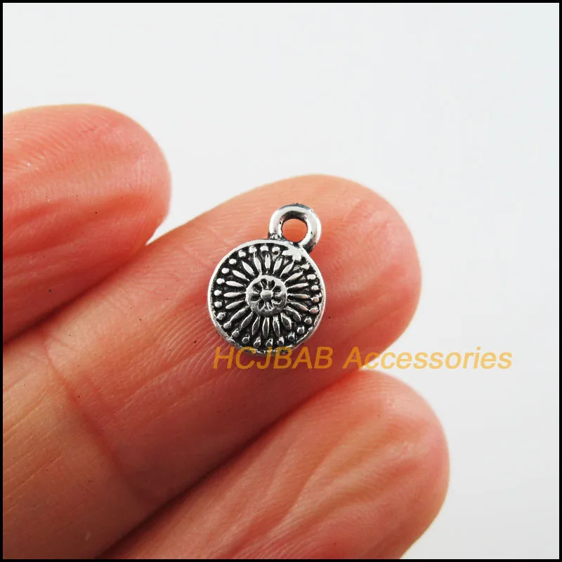 60 New Flower Charms Tibetan Silver Color Round Pendants 7.5x10.5mm