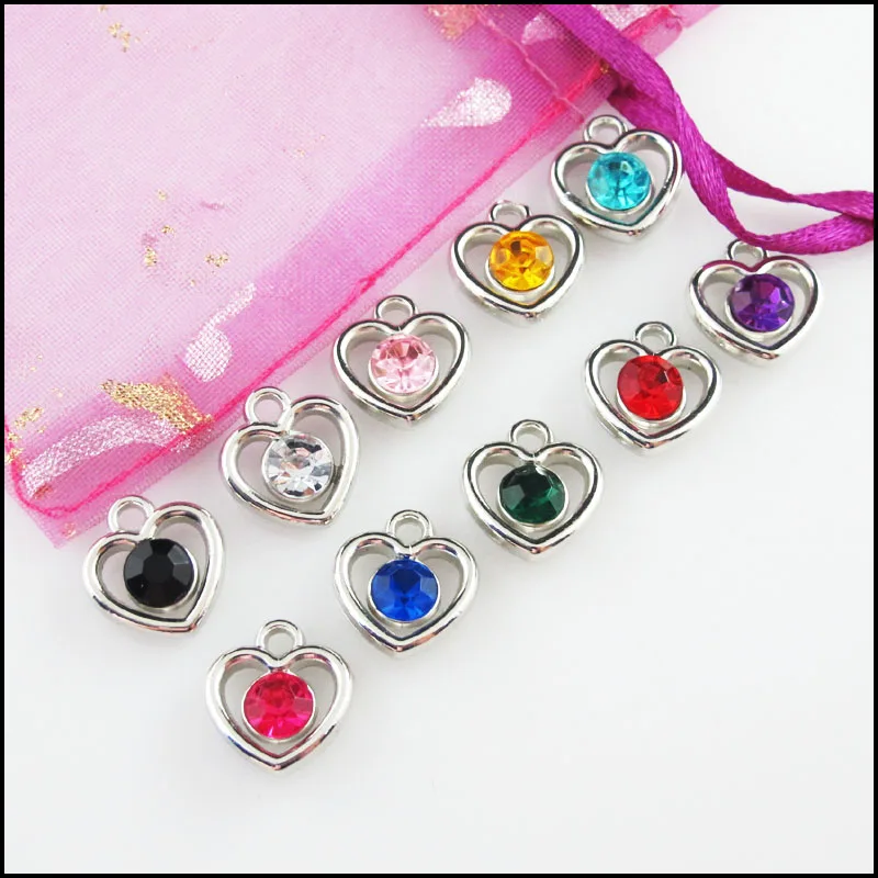 30Pcs Mixed Crystal Dull Silver Plated Heart Circle Charms Pendants 13x14mm