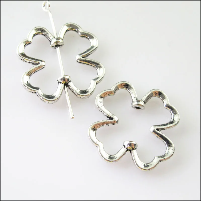 20 New Charms Clover Flower Spacer Frame Beads 22mm Tibetan Silver ...