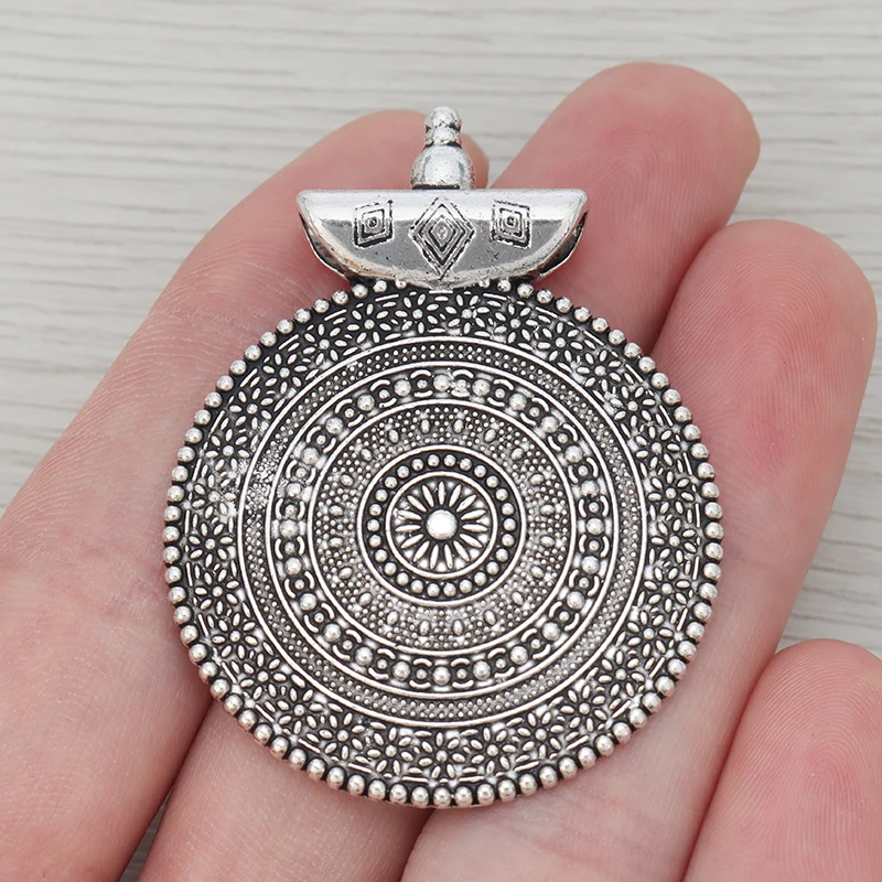 3 x Tibetan Silver Bohemia Large Round Flower Charms Pendants For Necklaces Jewelry Making Findings ...