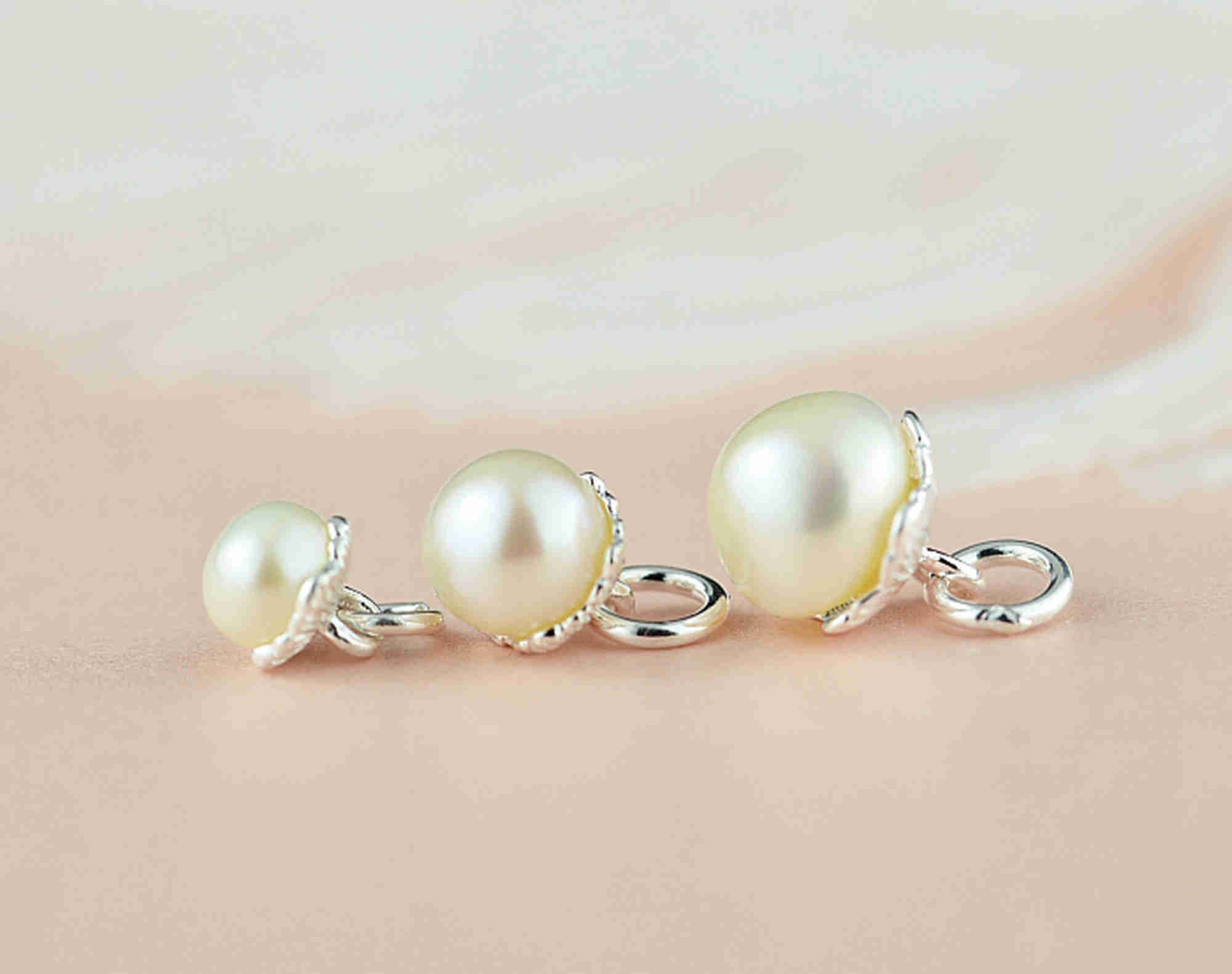 Sterling Silver Round Pearl Charm, s925 Silver Charm For Jewelry Ma...