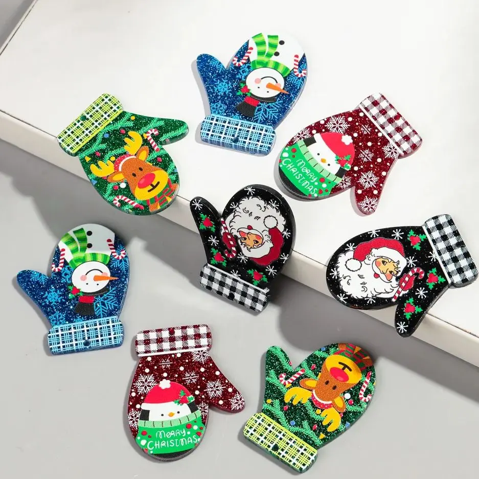 10pcs Glitter Christmas Gloves Acrylic Charms Santa Claus Elk Snowman Print Pendant for DIY Jewelry ...