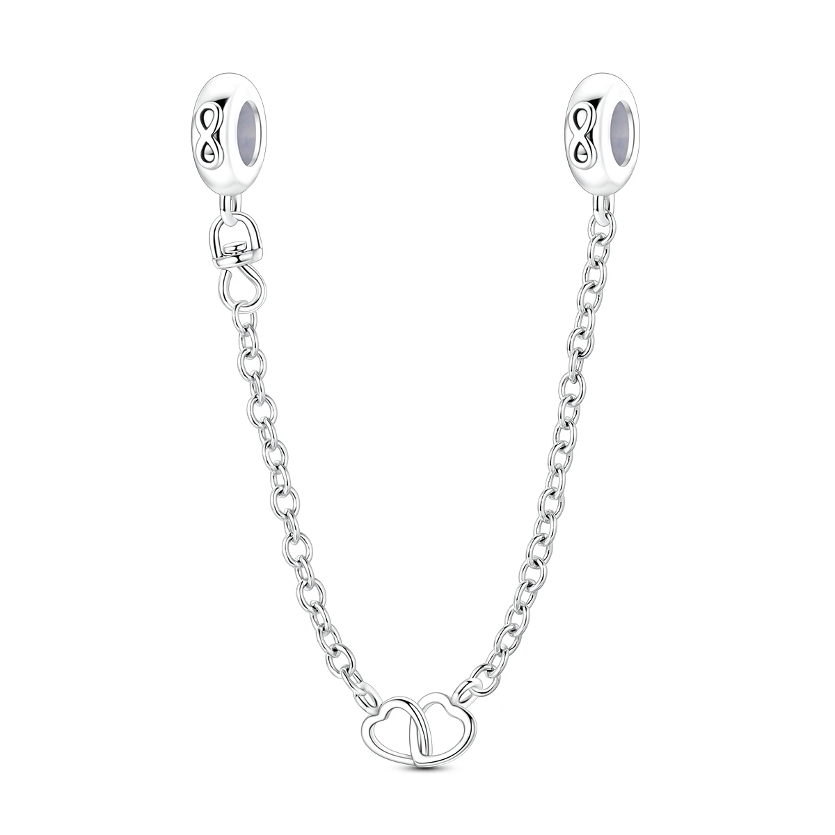 925 Sterling Silver Two Hearts Interlocked Chain Fashion Inlaid Zirconium Love Charms Bead Fit Origi...