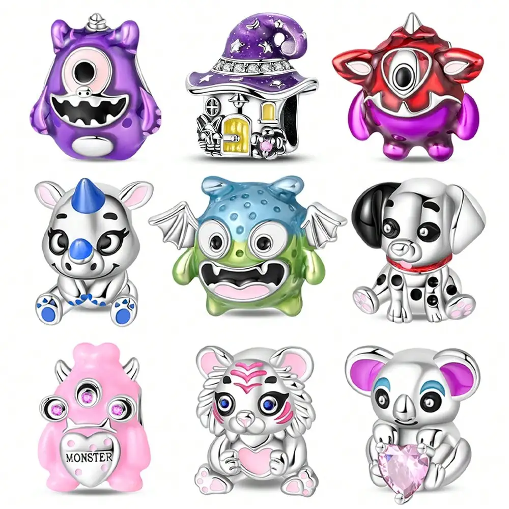 Charms Plata Cute little Monster Beads Charm Silver Plated For Char...