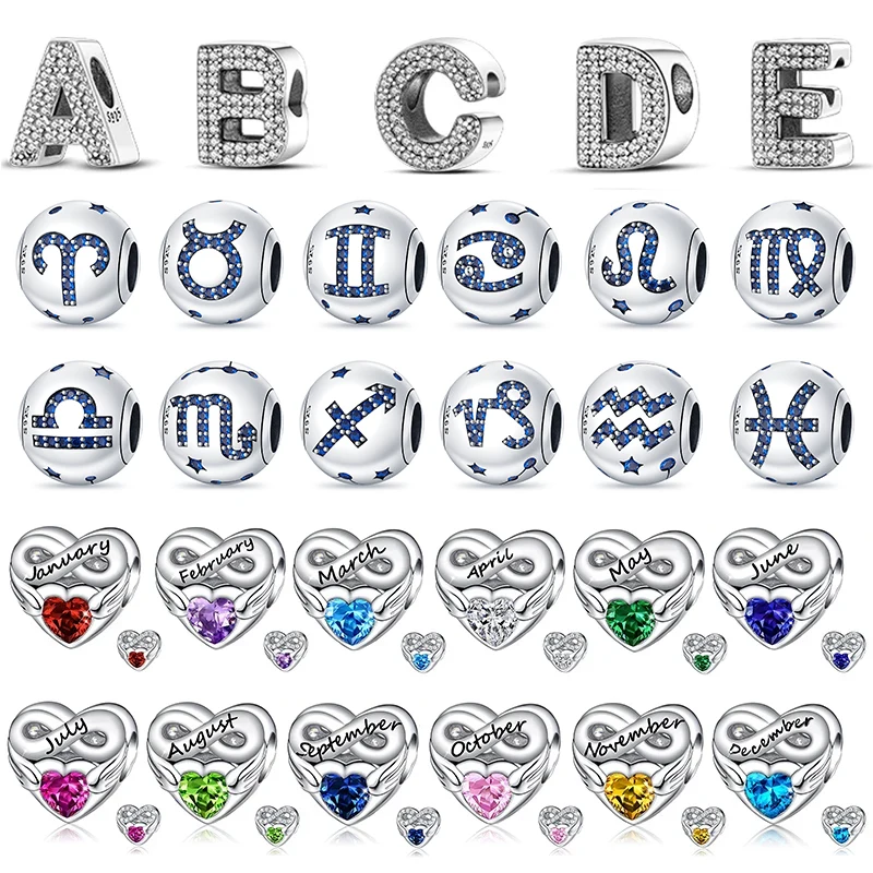 26 A-Z Alphabet Beads 925 Sterling Silver January–December LOVE Charm Fit Original Bangle Char...
