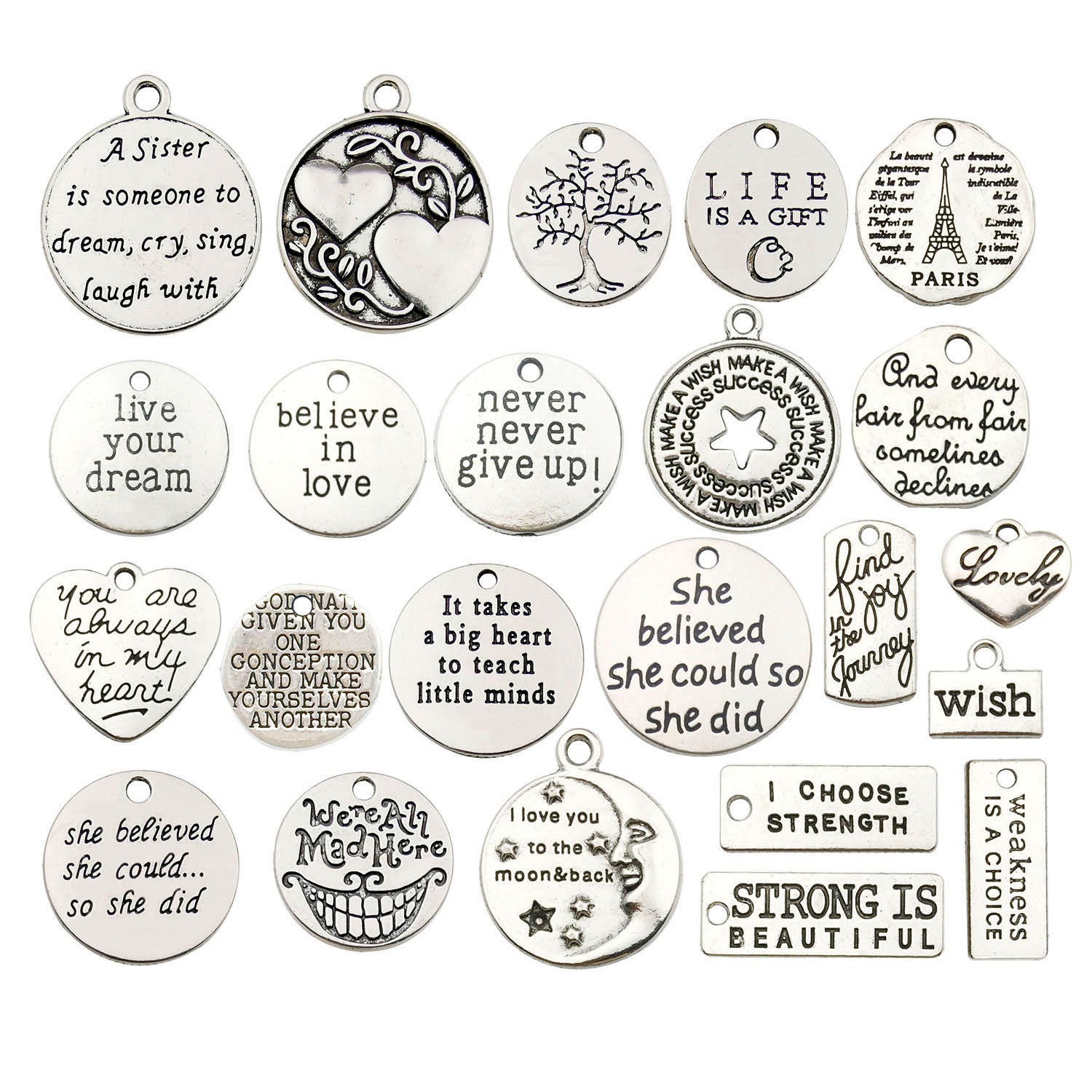 10/40pcs Inspiration Words Charms Craft Supplies Pendants for Crafting, Jewelry Findings Making Acce...