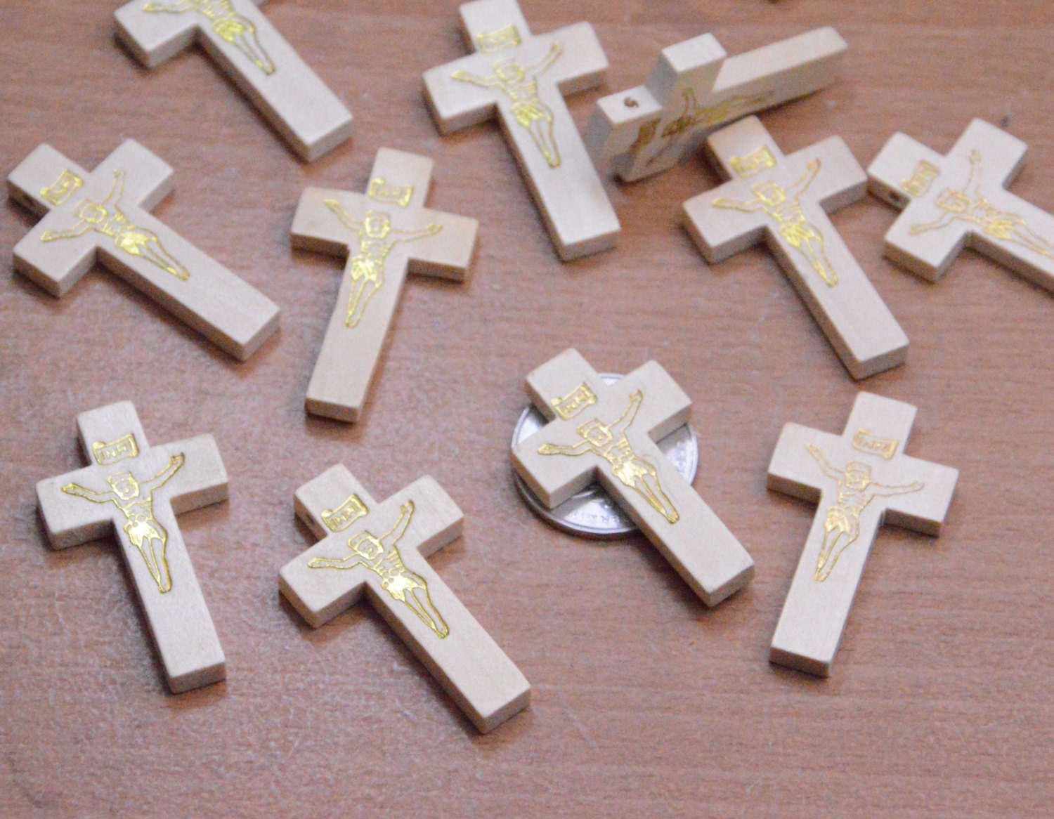 30pcs wood cross beads,wooden cross with Jesus logo,natural wooden ...