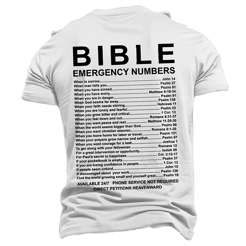 Christian Bible Emergency Numbers Backprint T-Shirt Religious Scrip...