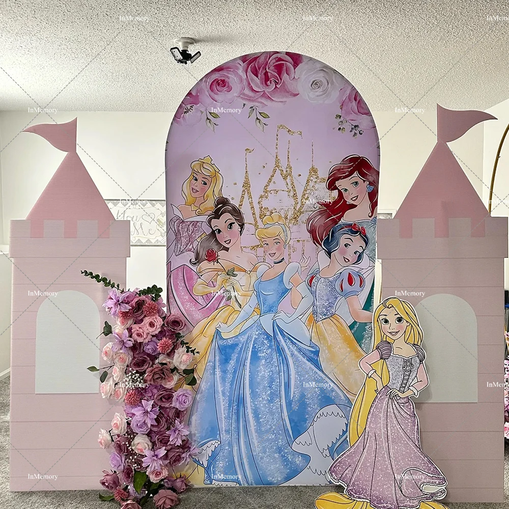 Disney Once Upon A Time Castle Floral Fairy Tale Princess Girls Birthday Party Arch Backdrop Cover P...