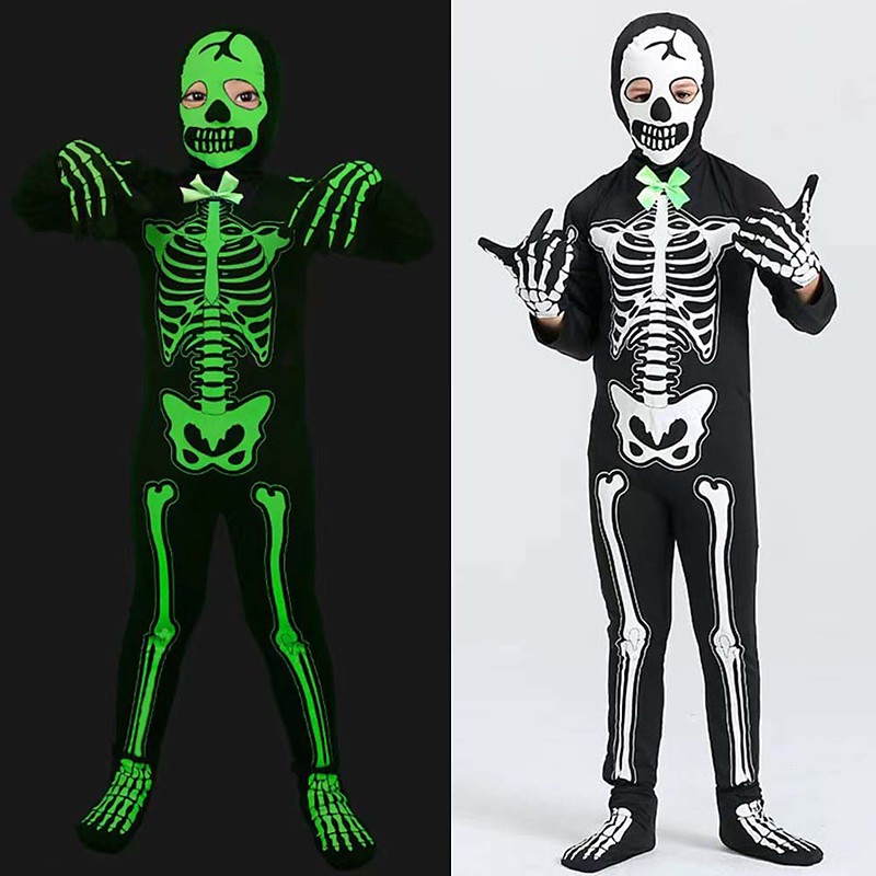 Skull Skeleton Halloween Costume Jumpsuit Bodysuits Glow in the Dar...