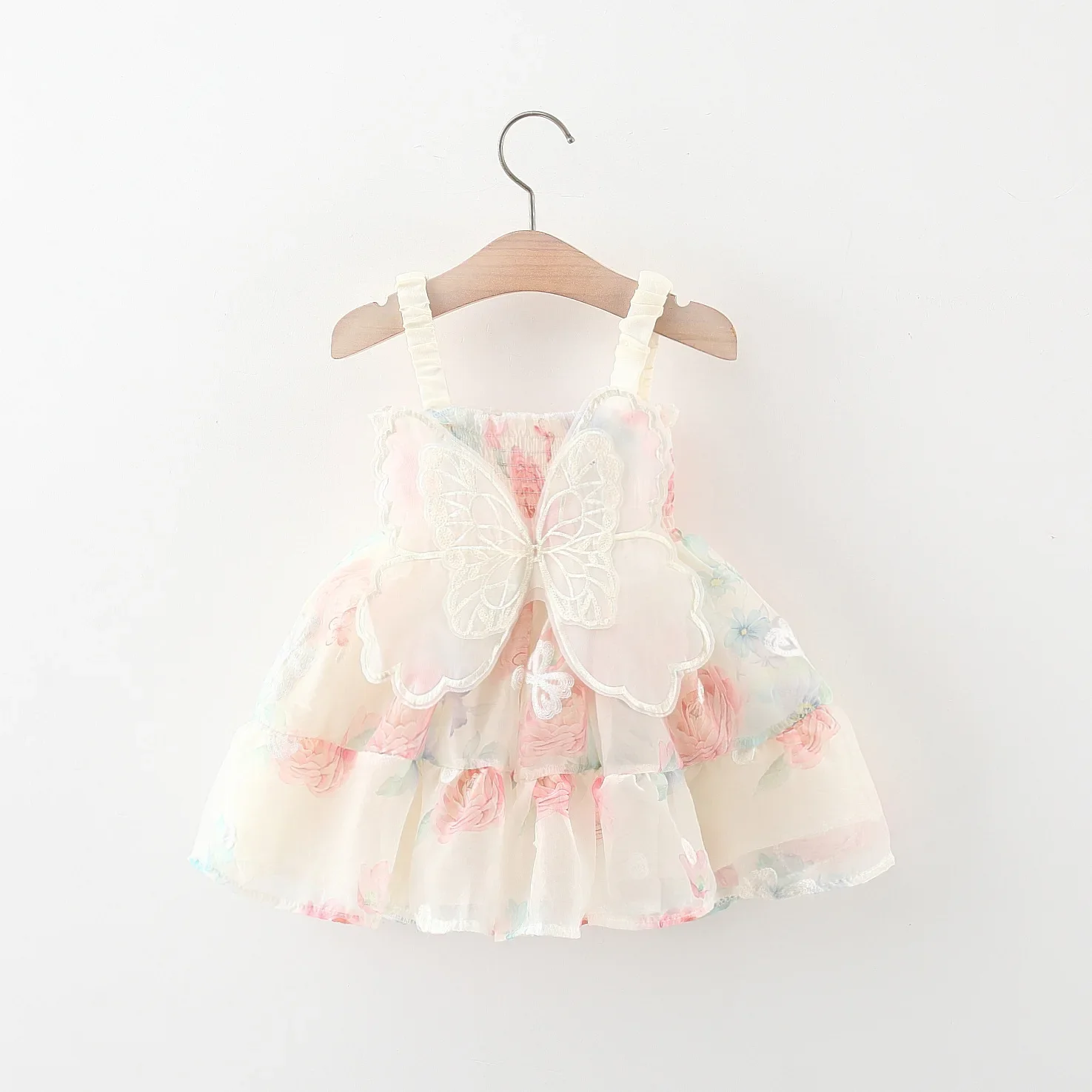 (0-3 years old) Summer Baby Girl Rose Princess Dress Girl Back Bow Wings Birthday Party Dress