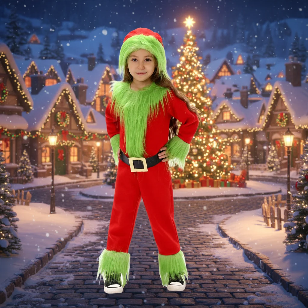 Deluxe Green Hairy Monster Elf Christmas Costume for Children Pants...