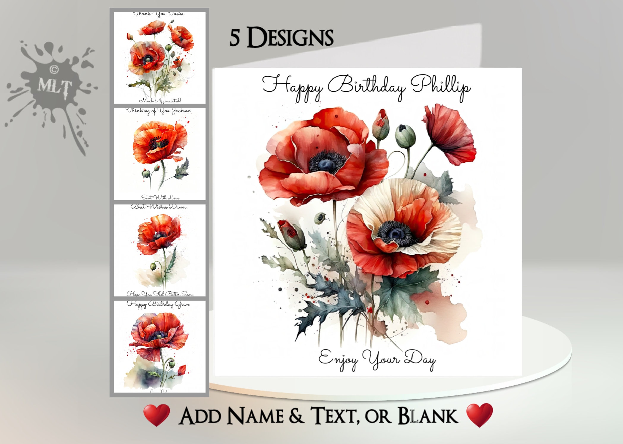 Poppy Card: Add Your Text + Name ~ Inside Message ~ Red Poppies, Po...