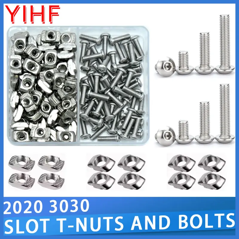 2020 3030 Slot T-nut M3 M4 M5 M6 T Track Nut and Hex Bolt Set Hamme...
