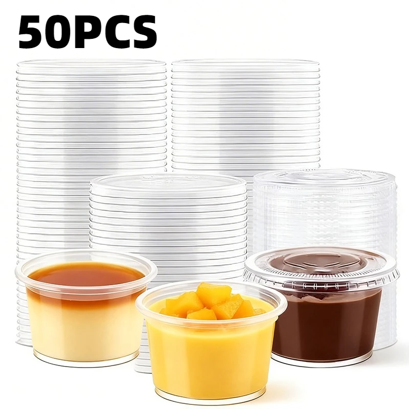 50PCS Disposable Pudding Cups Plastic Transparent Dessert Cups Bowl...