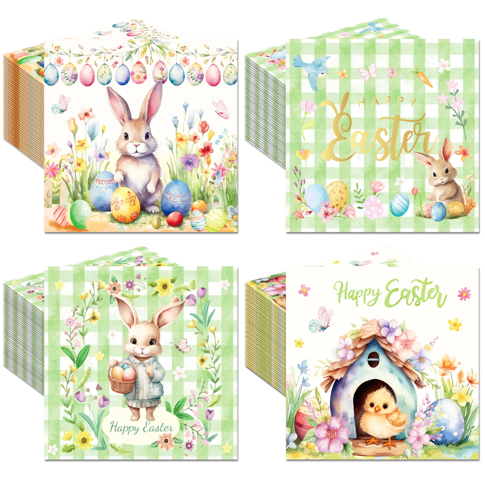 20pcs/32*32cm Easter Bunny Printed Napkins Disposable Paper Dinner Serviette Easter Egg Pattern Pape...
