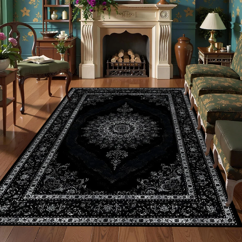 Black Bohemian Style Carpet Turkish Stain-resistant Carpet Living Room Bedroom Rug Coffee Table Floo...