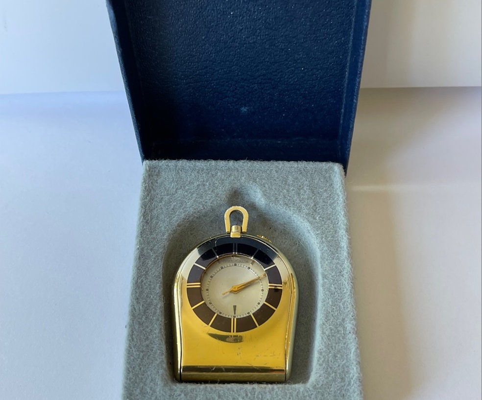 "Jaeger-LeCoultre Memovox Alarm Pocket Travel Desktop Cal.489Gold Capped Black Enamel Case Pear...