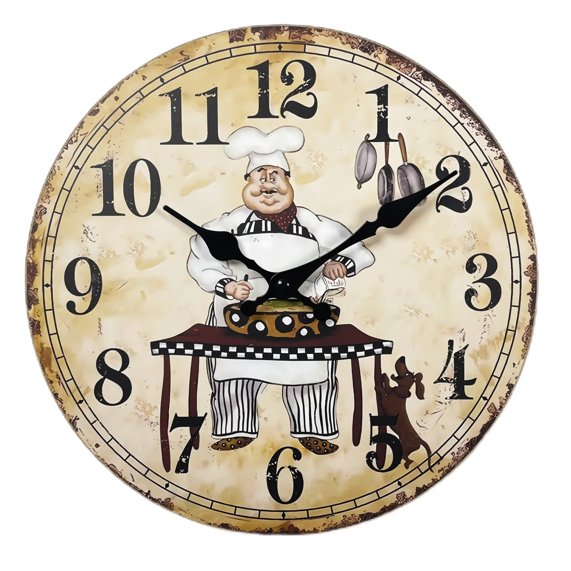 Retro Chef and Dog Wooden Wall Clock Living Room Bedroom Kitchen Home Decoration Wall Clock Silent Q...