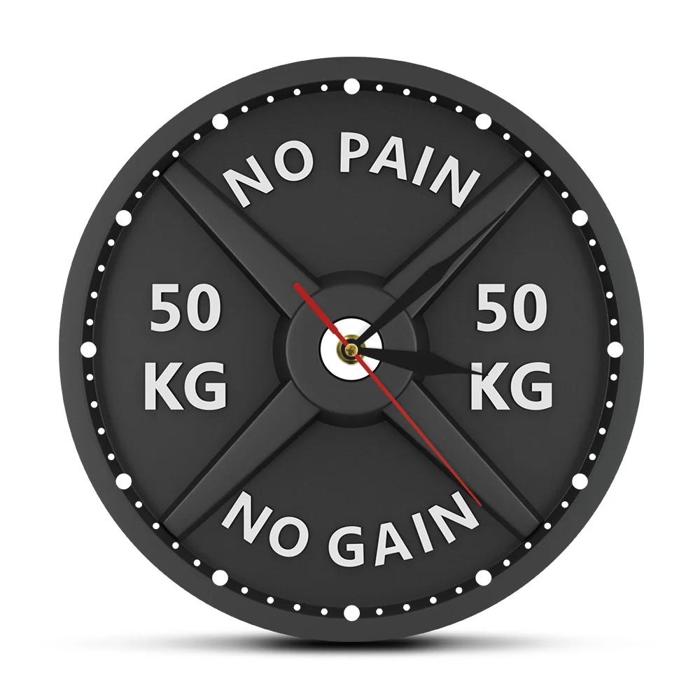 NO PAIN NO GAIN 50KG Barbell 3D Modern Wall Clock Weight Lifting Dumbbell Bodybuilding Wall Watch Gy...