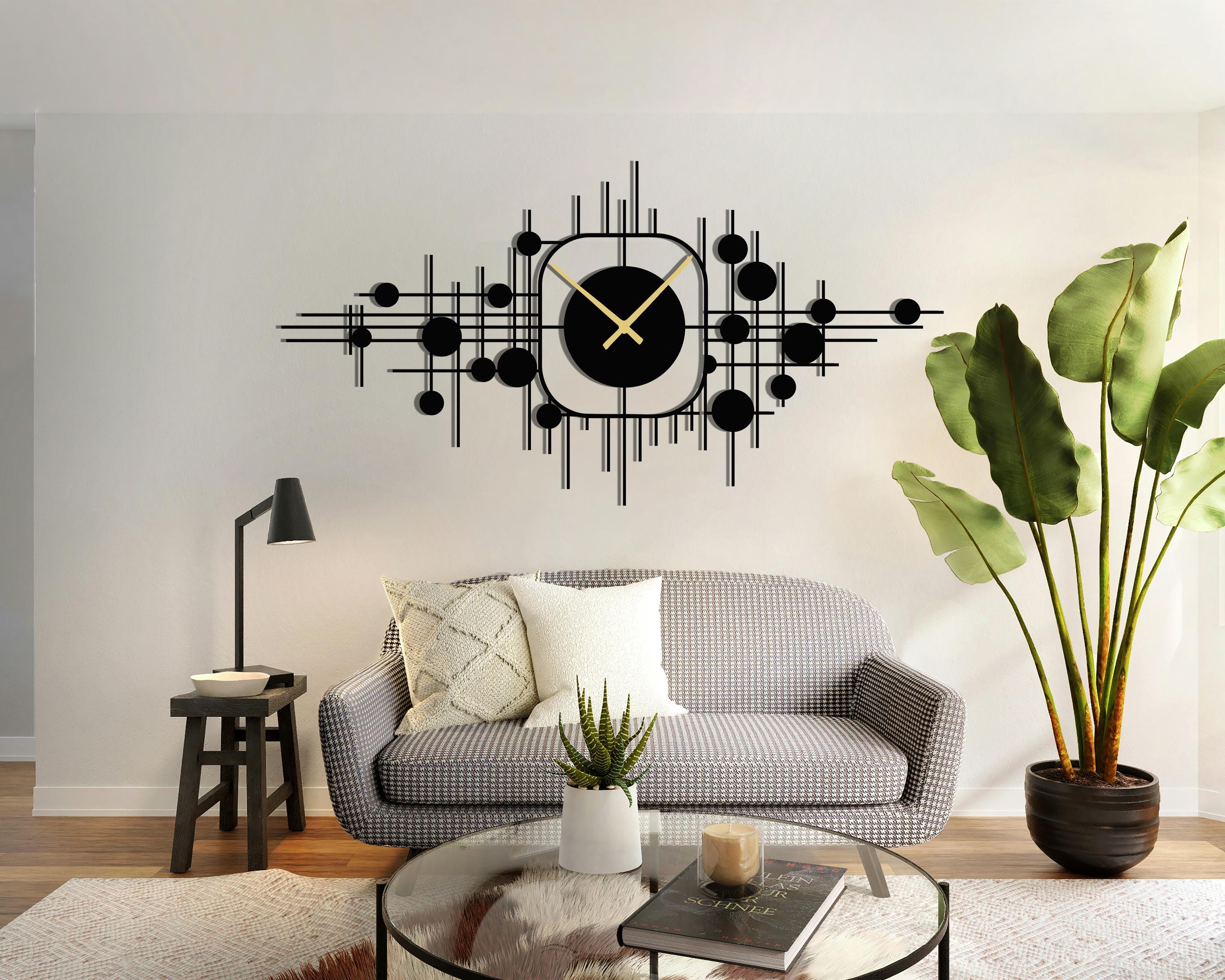 Modern Metal Wall Clock, Abstract Geometric Clock Decor, Large Blac...