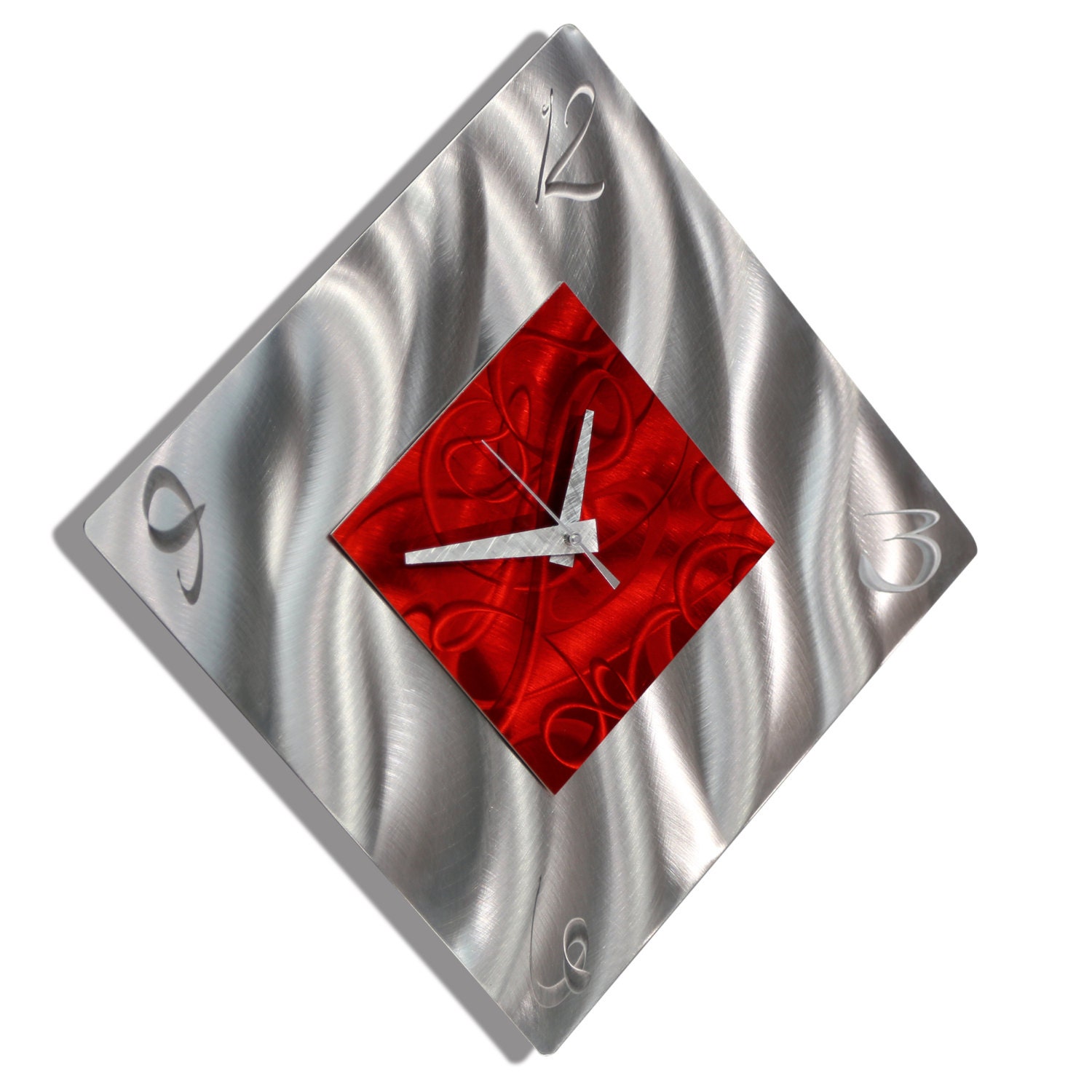 Red & Silver Metal Wall Clock - Abstract Functional Art - Moder...