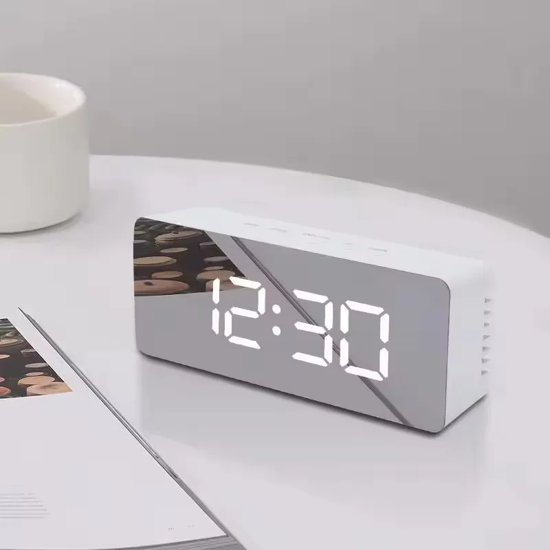 1Pc White LED Mirror Digital Alarm Clock Snooze Time Display, USB Powered Night Light Desktop Table ...