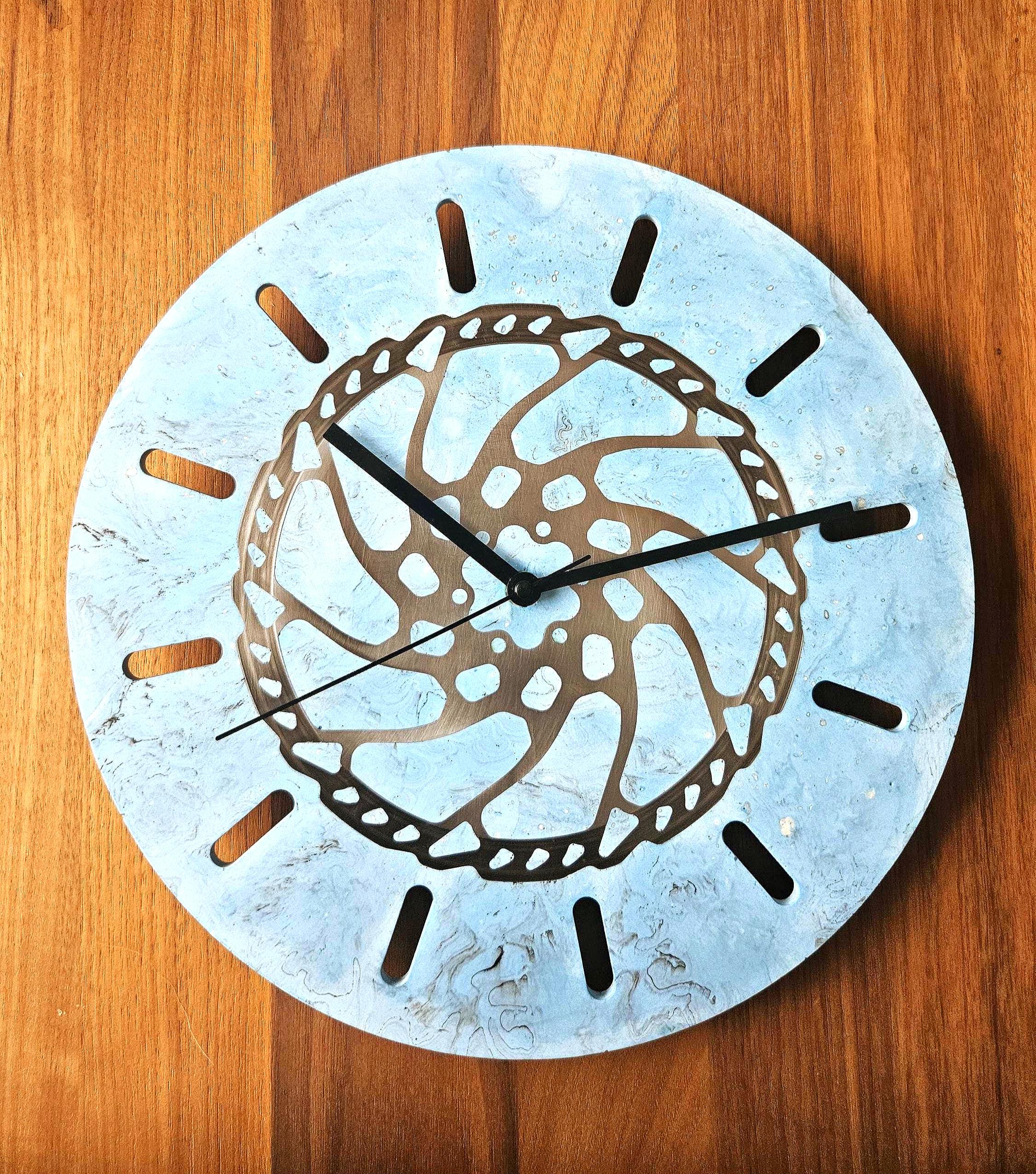Handmade wall clock made of Jesmonite | Bicycle brake disc design |...
