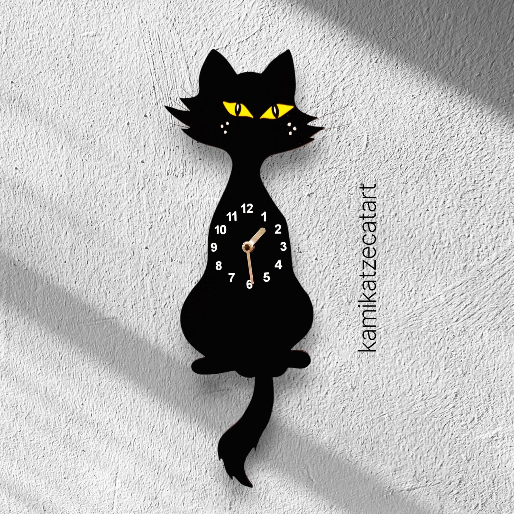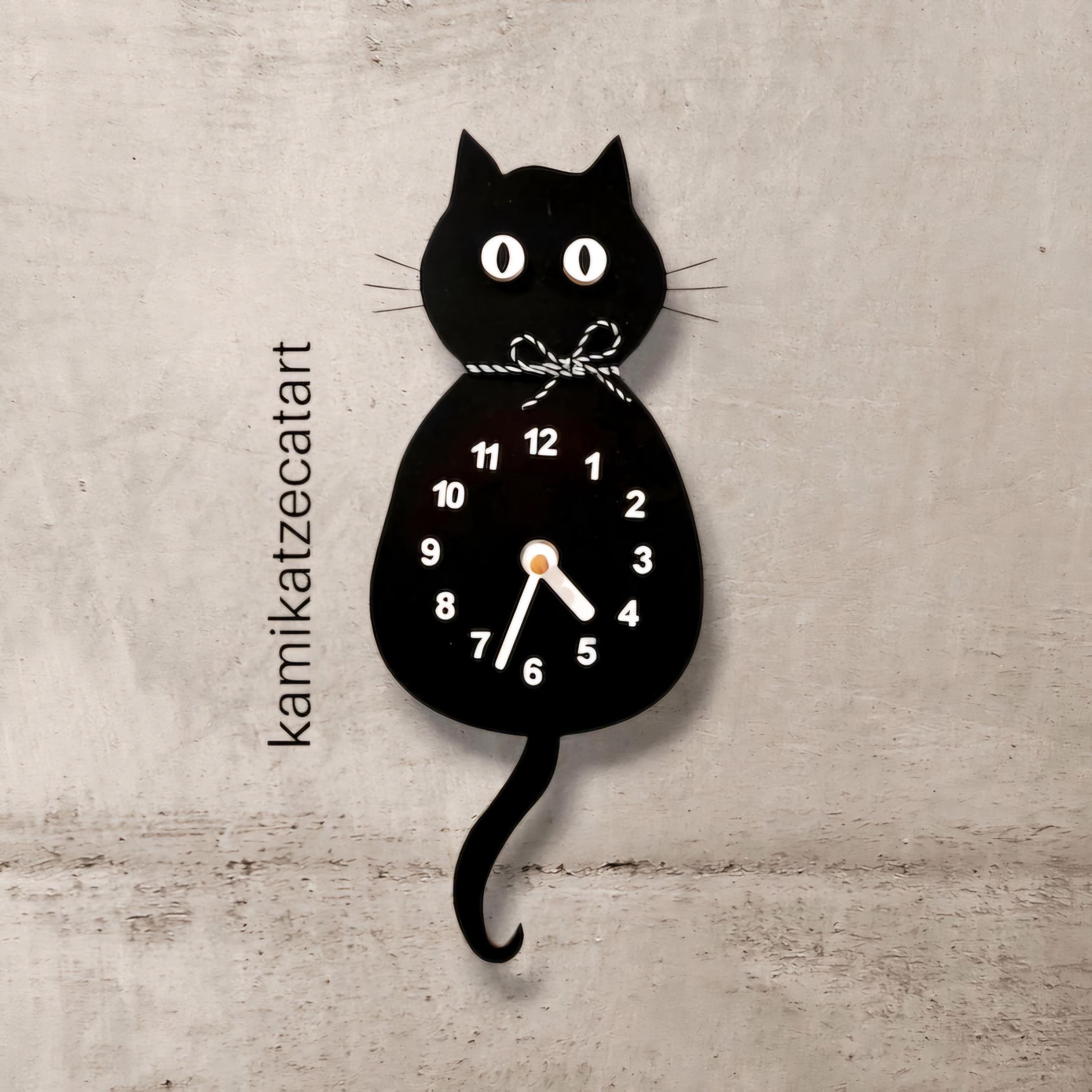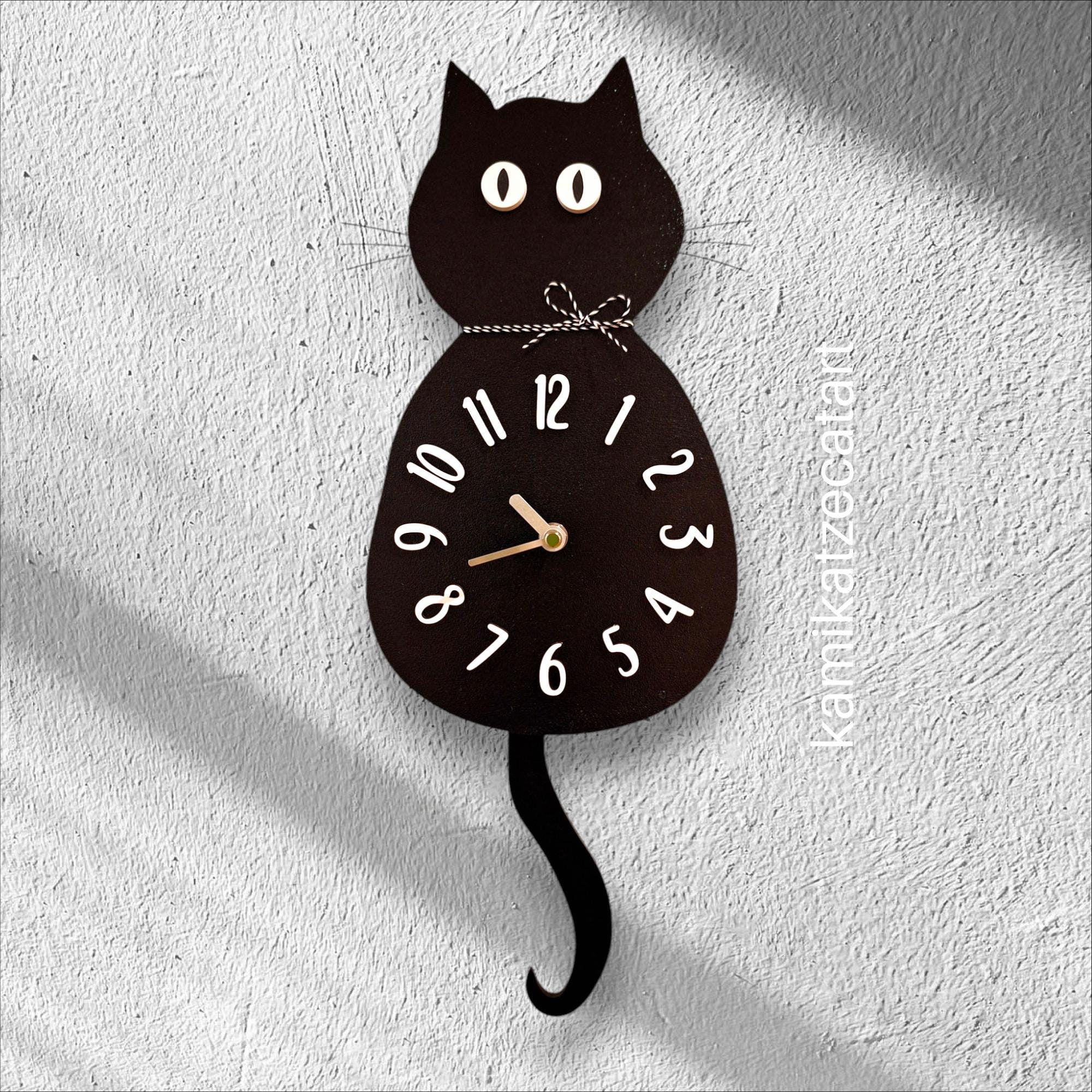 Cat Pendulum Clock BABY MOLLY, Cat Clock, Black Cat, Wooden Cat, Ta...