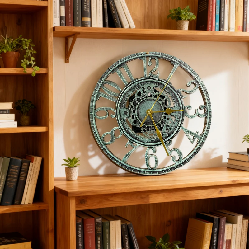 1 10 inch/12 inch 2D wooden pointer clock, office coffee shop decoration, living room wall clock, fl...